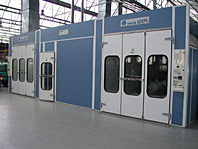 Камера имеет ширину 4 метра, что наряду с высоким уровнем освещения позволяет производить качественную окраску иномарок. По желанию заказчика возможна установка дополнительного освещения. Камеры комплектуются воздухоподготовительными блоками различной производительности и тепловой мощности, что позволяет поддерживать требуемую для покраски температуру воздуха даже при 20-градусном морозе снаружи помещения. Малое количество пыли в отфильтрованном воздухе позволяет получить качество лакокрасочных покрытий, не уступающее по всем характеристикам качеству заводской окраски.