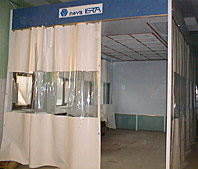 На участке подготовки организован воздушный поток, уносящий остаточную пыль от операций зачистки, шлифовки и полировки. Простейший участок – это просто вентилятор , вытягивающий загрязненный воздух в пол (или в напольный фильтр) и возвращающий его очищенным в зону подготовки. По мере улучшения конструкция участка подготовки усложняется: для организации вертикального потока и отделения участка от остального цеха используют потолок и занавески. Если добавить потолочные тонкие фильтры, то воздух будет дополнительно очищаться (каркас потолка может быть использован для крепления светильников с целью улучшения освещенности рабочего места). Потолочный вентилятор, заслонка управления потоком, обеспечивающая режим грунтования, и электрическое управление движением занавесок превращают участок подготовки в место для экспресс-ремонта мелких повреждений в присутствии заказчика.