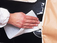 Липкие салфетки нового типа изготовлены из объемного пористого материала и используются для удаления частиц пыли перед напылением краски.