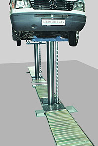 Состоит из плунжеров, установленных один за другим вдоль колёсной базы обслуживаемого автомобиля, одного неподвижного и одного подвижного. Это позволяет обслуживать автомобили с колёсной базой разной длины.
