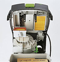 Чем меньше времени Вы теряете на обслуживание, тем больше времени Вы можете использовать на то, чтобы зарабатывать деньги: на Вашу собственную работу. Поэтому пылесосы Festool серии СТ оснащены плоским фильтром с увеличенной вчетверо поверхностью против применяемых до сих пор патронных фильтров. Это означает, что срок службы увеличивается. А время замены фильтра короче – так как полностью исключается применение вспомогательного инструмента.