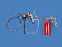 Пистолет с пневматическим приводом для нанесения защитных покрытий в скрытые полости. Пистолет работает с банками объемом 1 л и имеет специальную конструкцию, обеспечивающую более глубокое проникновение покрытия в недоступные полости кузова.