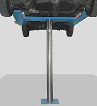 Одноплунжерный подъёмник с несущей платформой, оснащённой решетчатыми пластинами для подхвата автомобиля под колёса.