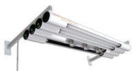 Модульная конструкция из трубчатых светильников на алюминевом кронштейне для крепления на стену, светильники тип IP33 Class II, для помещений без специальных требований по ПУЭ.